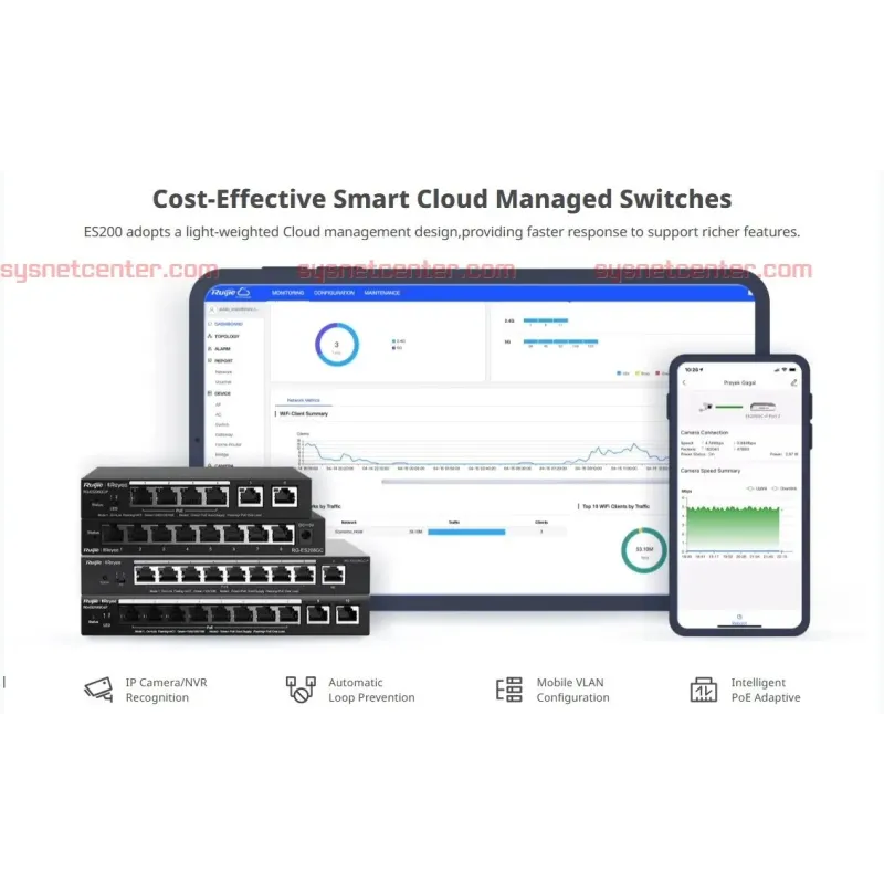 RG-ES228GS-LP Reyee Cloud Managed Smart POE Switch สำหรับงาน IP Camera, WIFI Hotspot