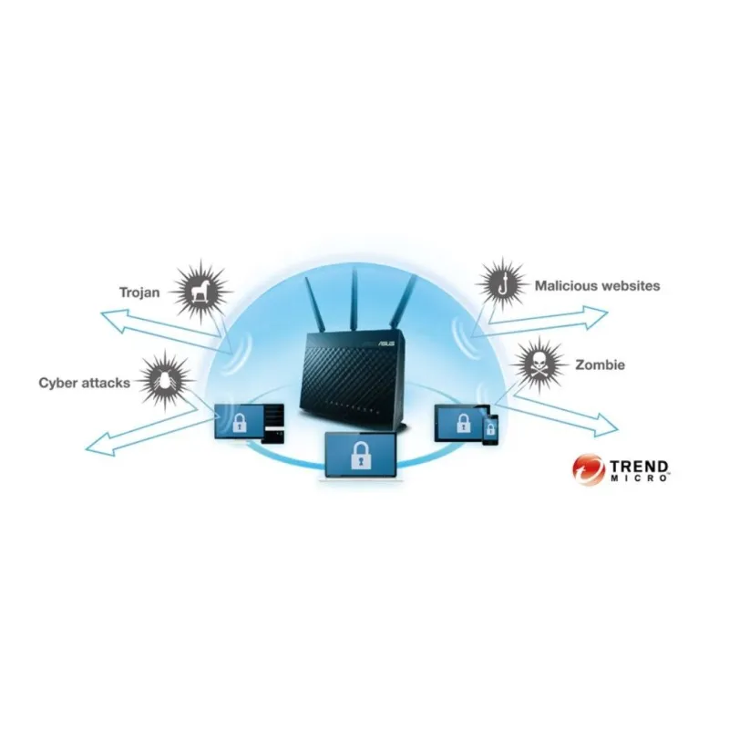- มีเทคโนโลยี AiProtection จากฐานข้อมูล Trend Micro เพิ่มความปลอดภัยระบบเครือข่ายขึ้นเป็น 3 เท่า พร้อมระบบจัดการการใช้งานอินเตอร์เน็ตสำหรับบุตรหลาน (Parental Control)