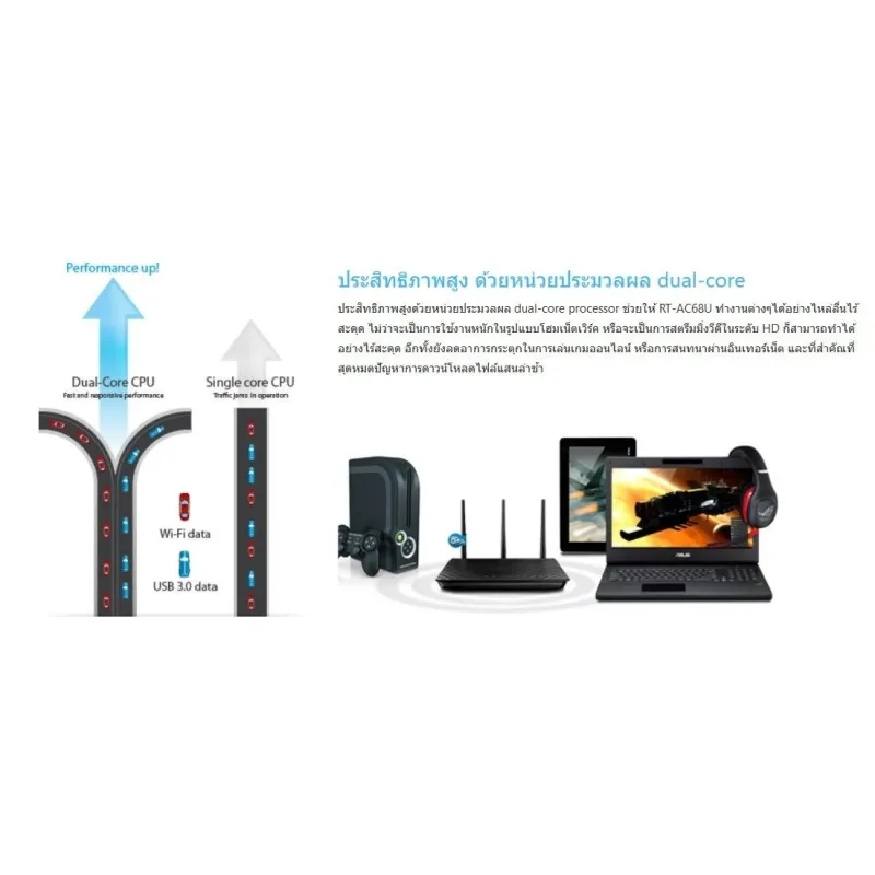 - หน่วยประมวลผลแบบดูอัลคอร์เพื่อประสิทธิภาพสูงสุดสำหรับ WiFi อีเทอร์เน็ตและ USB