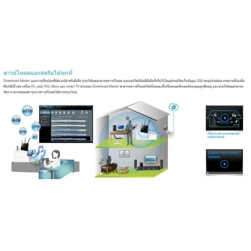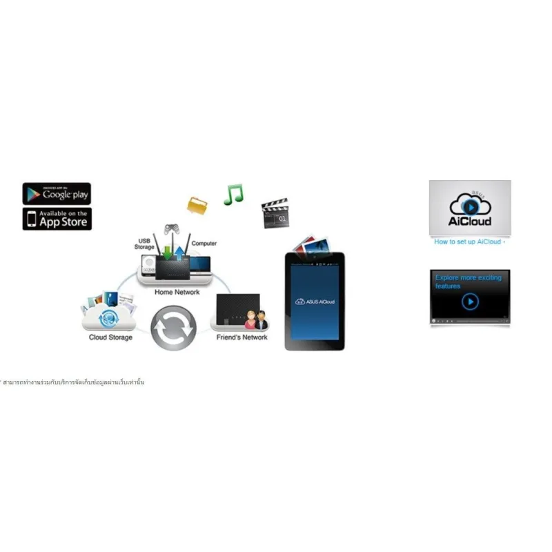 - ASUS AiCloud ให้คุณซิงค์ แชร์ และสตรีมไฟล์ได้ทุกที่บนอุปกรณ์ที่เชื่อมต่ออินเตอร์เน็ต