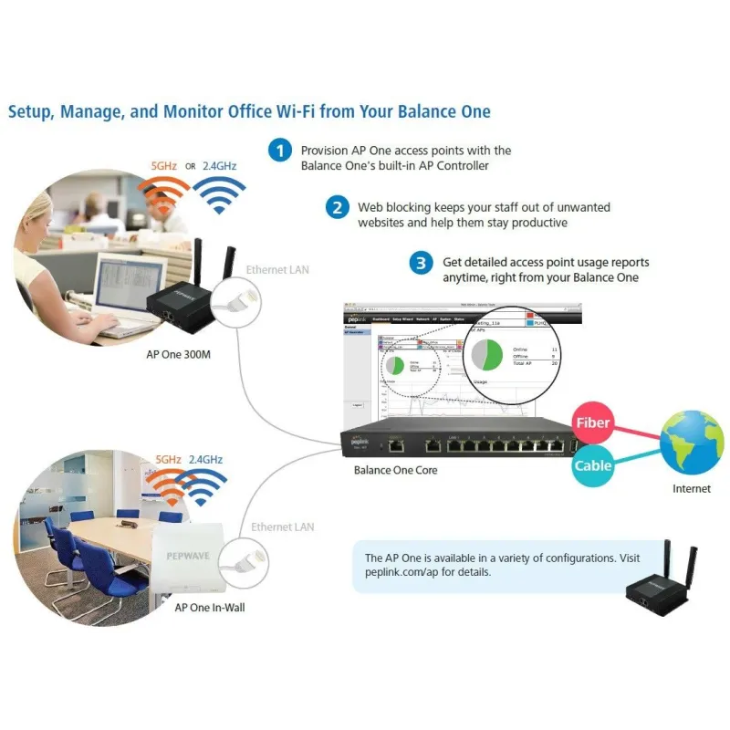 Peplink Balance One (BPL-ONE) LoadBalance Dual-Wan VPN Router Wireless AC, Throughput 600Mbps PEPVPN 2 Tunnel
