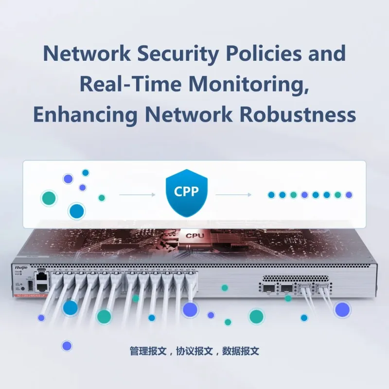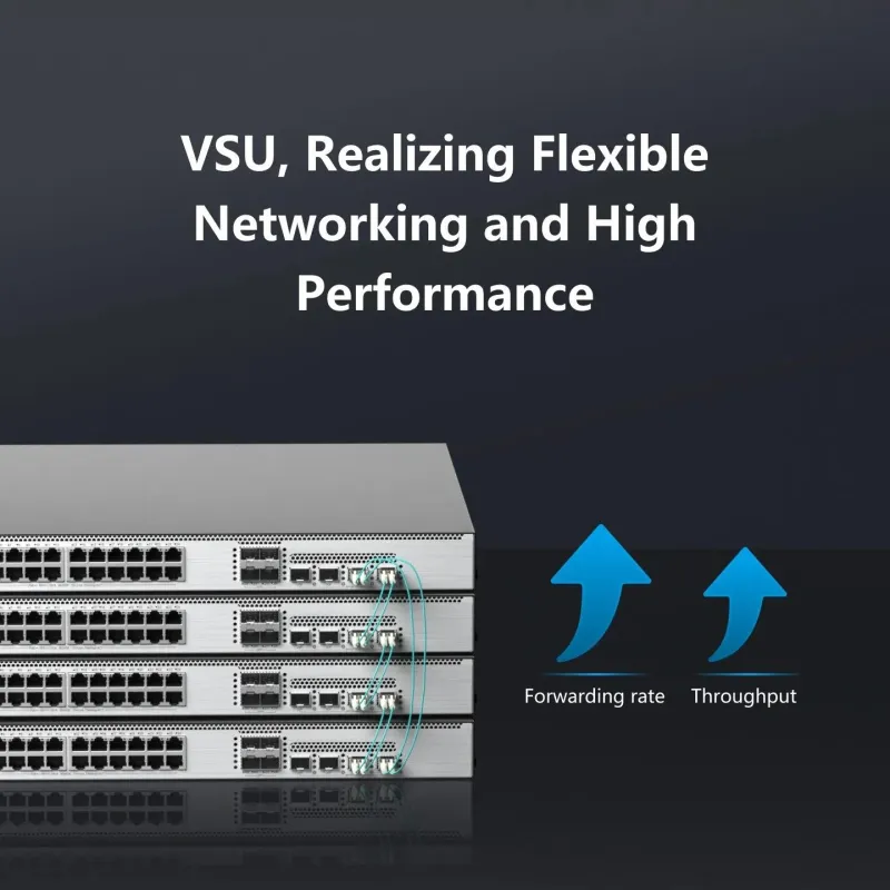 NFPP protects CPU from high load damage to guarantee device management and operation, thus improving network security and stability.Multiple physical switches can be virtualized into one logical unit to simplify network configuration and architecture, eliminating loops, and improving reliability.