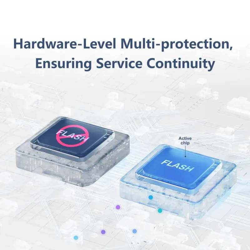 Two Flash chips are used to store the system Boot program for hardware-level Boot redundancy, avoiding device failure caused by a failed Flash chip.