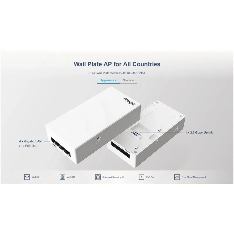 Overview | Ruijie RG-AP180P-L Wall-Plate Wireless AP AX Wi-Fi 6 ความเร็วสูงสุด 1.975Gbps, 5 Port Lan Gigabit, PoE Passthrough รองรับ POE มาตรฐาน 802.3at |