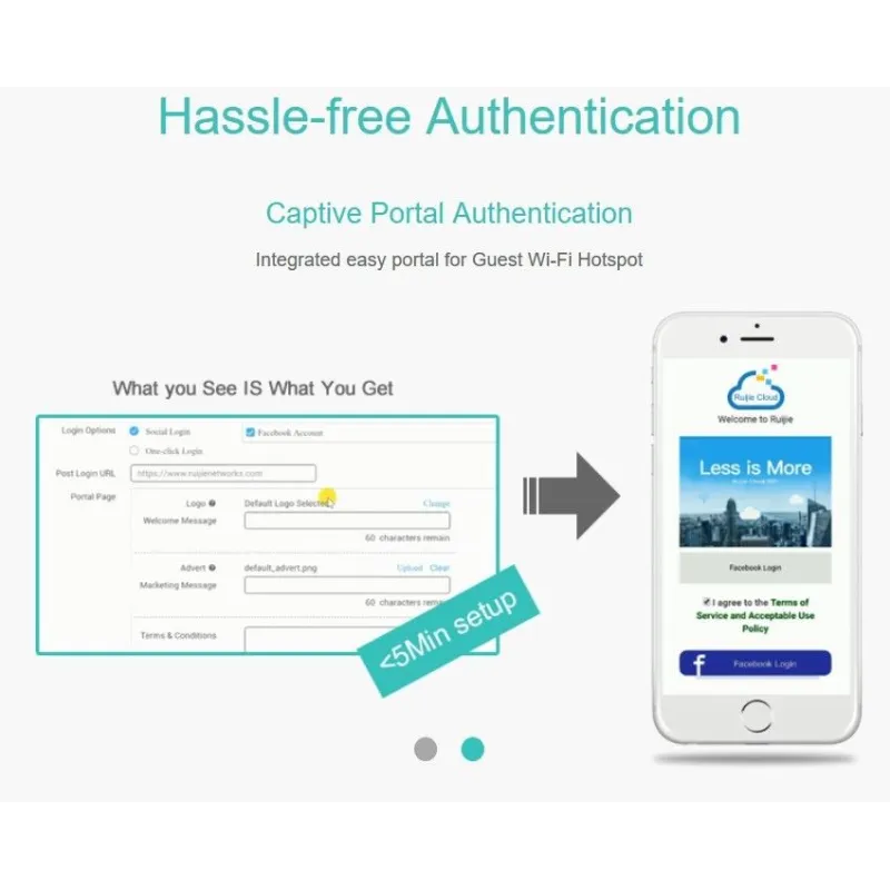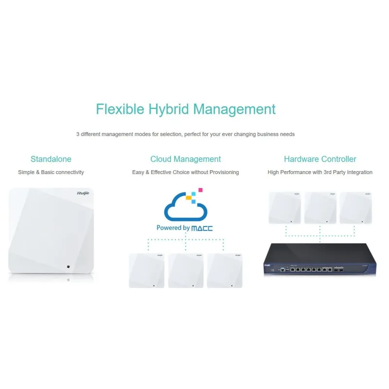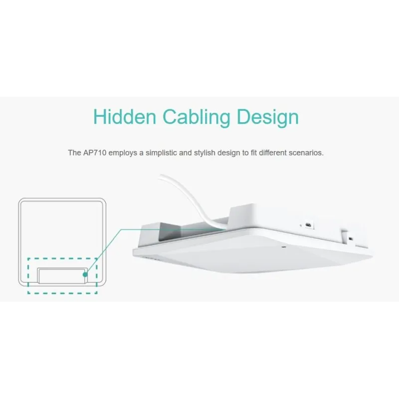 Overview | Ruijie RG-AP710 Wireless Access Point มาตรฐาน AC 2x2 MU-MIMO Dual-Band กระจาย 2 ย่านความถี่ ความเร็วสูงสุด 1.167Gps, 1 Port Lan Gigabit รองรับ POE มาตรฐาน 802.3aด รองรับการทำ Authenticate แบบ Captive Portal, Social Login Manage และ Monitor ผ่าน Cloud, Standalone และ Hardware Control พร้อม Ruijie Cloud License แบบ Lifetime |