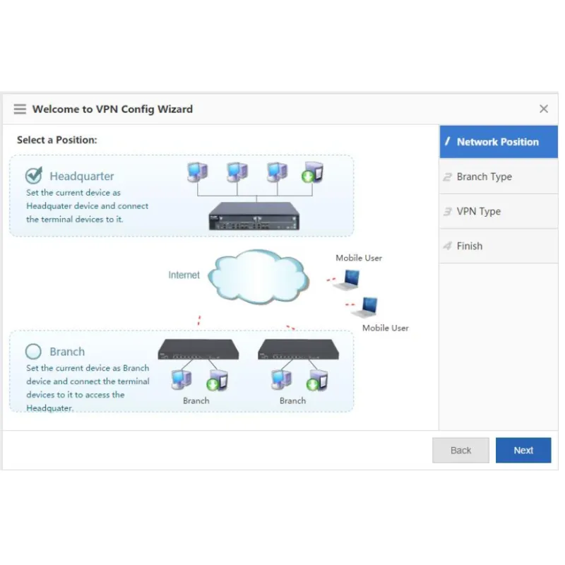 Ruijie SME Security Gateway has significantly simplified the VPN configuration, which could be completed just by a few clicks, eliminating the need for professional maintenance. The gateway enables users to view and control the traffic in the VPN tunnel, establishing a visualized VPN to guarantee the security of key services using VPN.