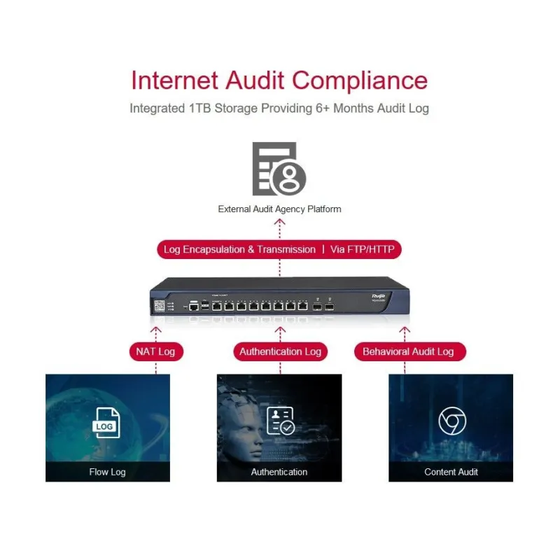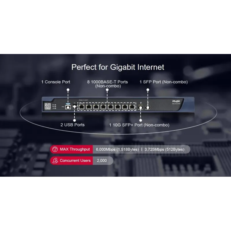 Ruijie RG-EG3250 Unified Security Gateway 6 Wan Gigabit, 1 Port SFP+, VPN IPSecs, Firewall, Free L7 DPI Signature Update,, พร้อม HDD ขนาด 1TB สำหรับเก็บ Log การใช้งาน Internet, รองรับ 2,000 Users