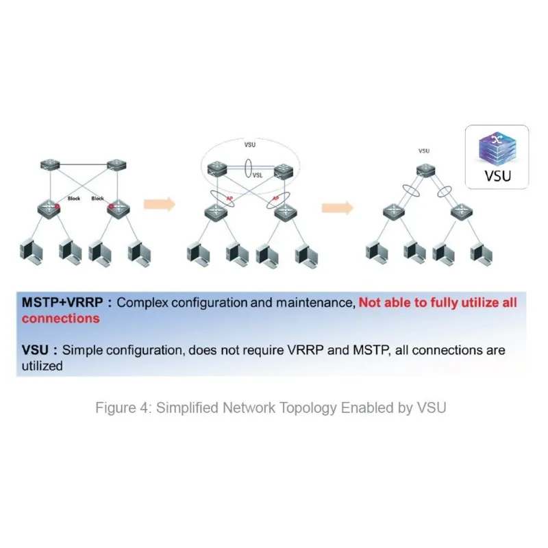 VSU (Virtual Switch Unit) | Support (up to 9 stack members,to ensure the effectiveness of the use, 4 members are recommended) |