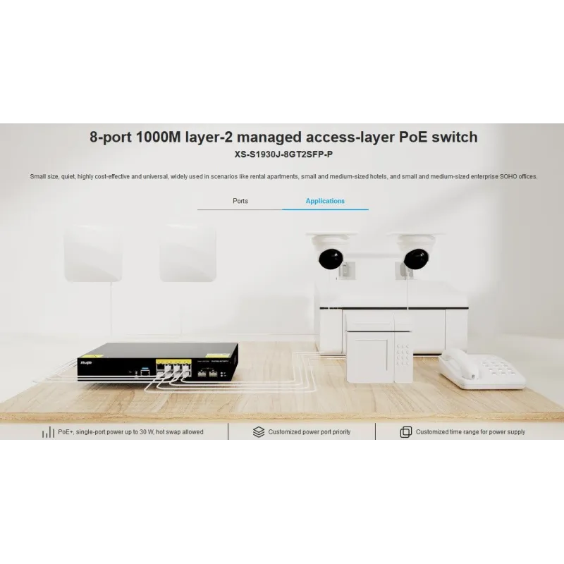 Ruijie XS-S1930J-8GT2SFP-P L2-Managed Gigabit POE Switch 8 Port, 2 Port SFP