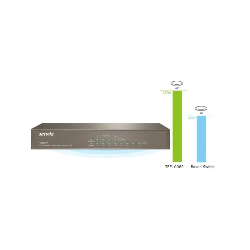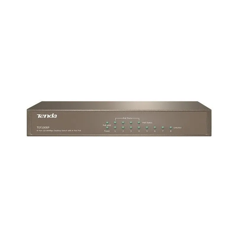 Overview | TENDA TEF1008P POE Switch ขนาด 8 Port ความเร็ว Fast Ethernet 10/100Mbps แบบ Desktop รองรับจ่ายไฟ POE มาตรฐาน 802.3af/at จำนวน 4 Port จ่ายไฟสูงสุดรวมทุก Port 58W |
