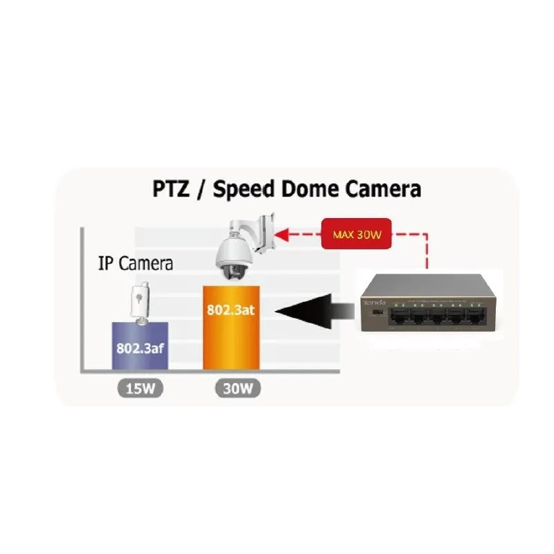 Overview | TENDA TEF1105P อุปกรณ์ POE Switch ขนาด 5 Port แบบ Desktop ความเร็ว 10/100Mbps จ่ายไฟ POE มาตรฐาน 802.3at/af ได้ 4 Port สูงสุดรวมทุก Port 63W (POE Budget) |
