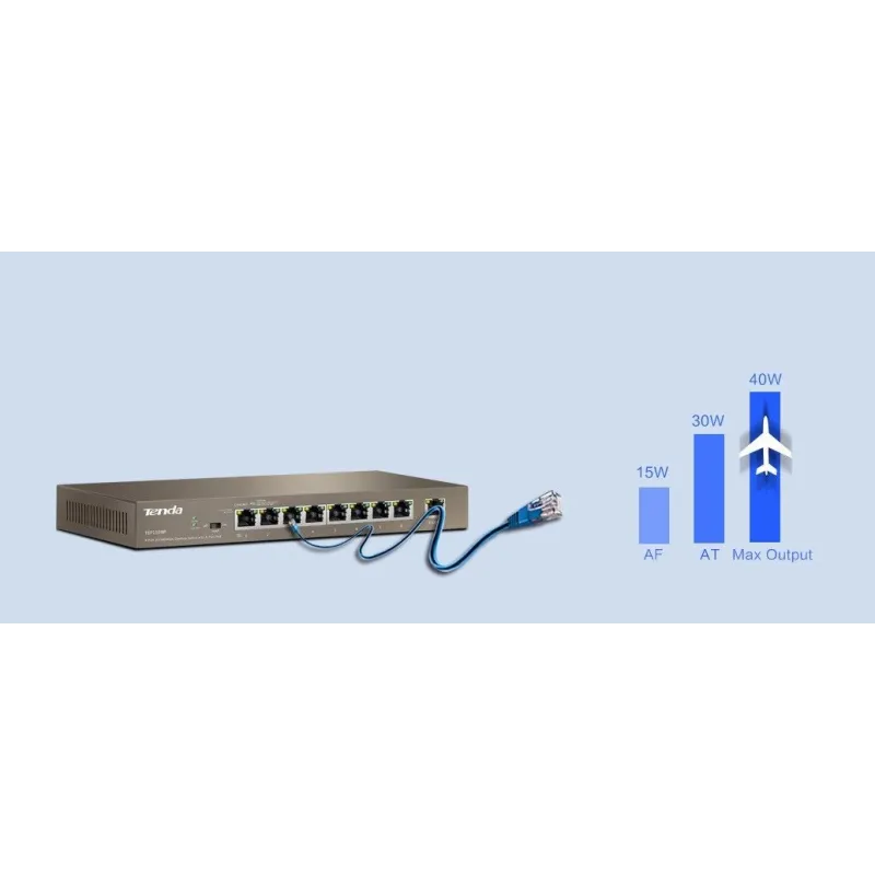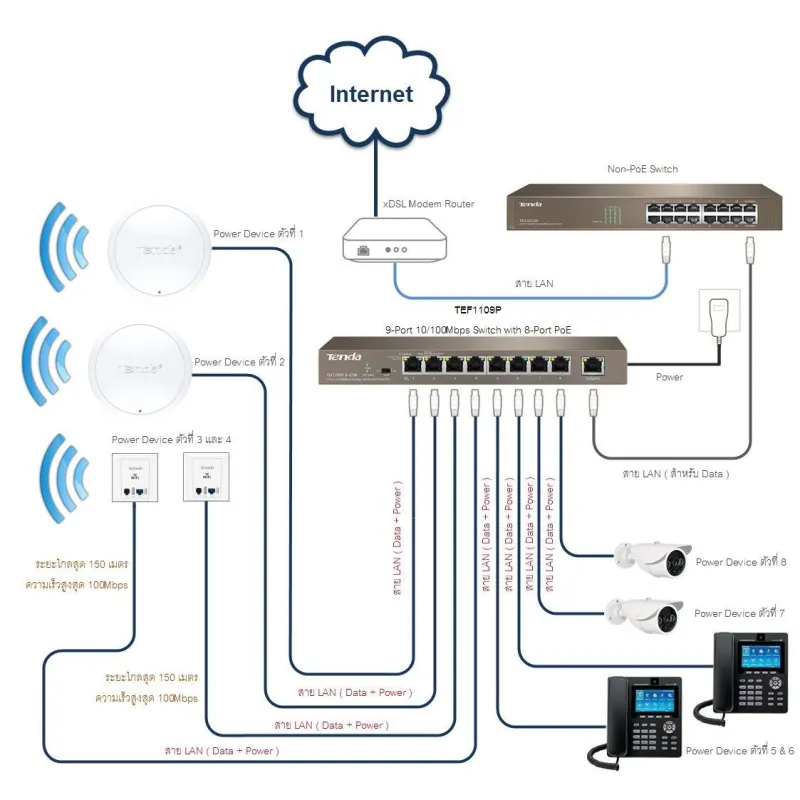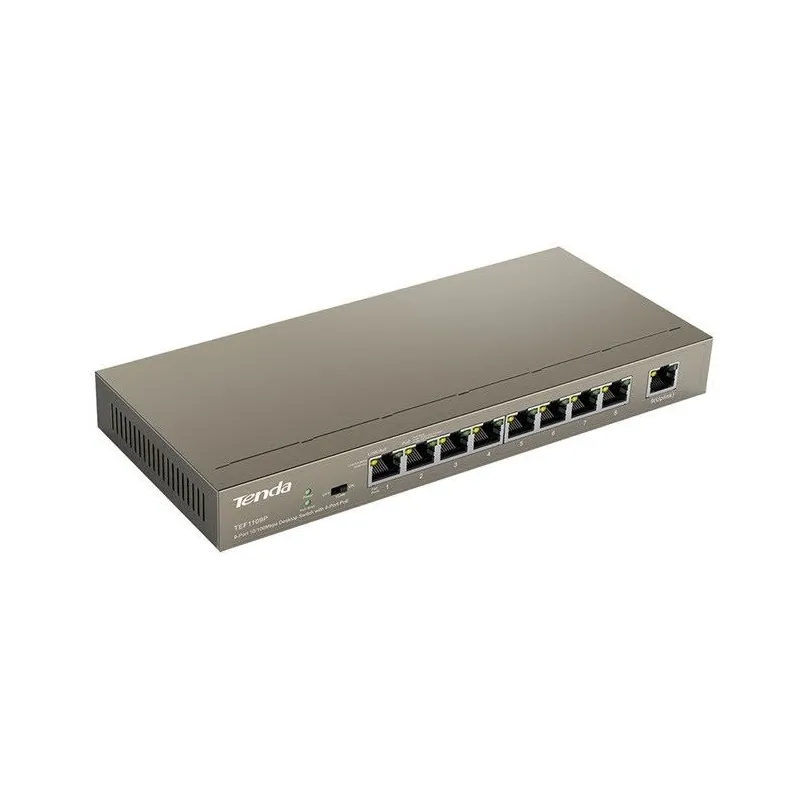Overview | TENDA TEF1109P POE Switch ขนาด 9 Port ความเร็ว Fast Ethernet 10/100Mbps แบบ Desktop รองรับจ่ายไฟ POE มาตรฐาน 802.3af/at จำนวน 8 Port รวมจ่ายไฟสูงสุด 120W และจ่ายไฟสูงสุด 40W ต่อ Port |