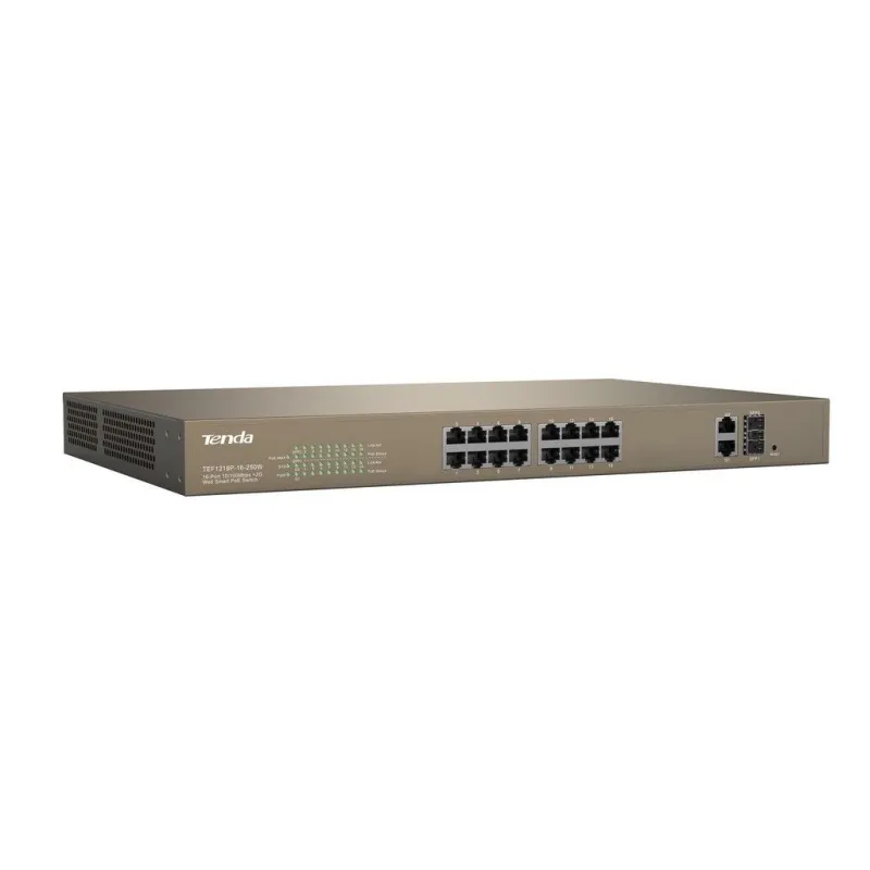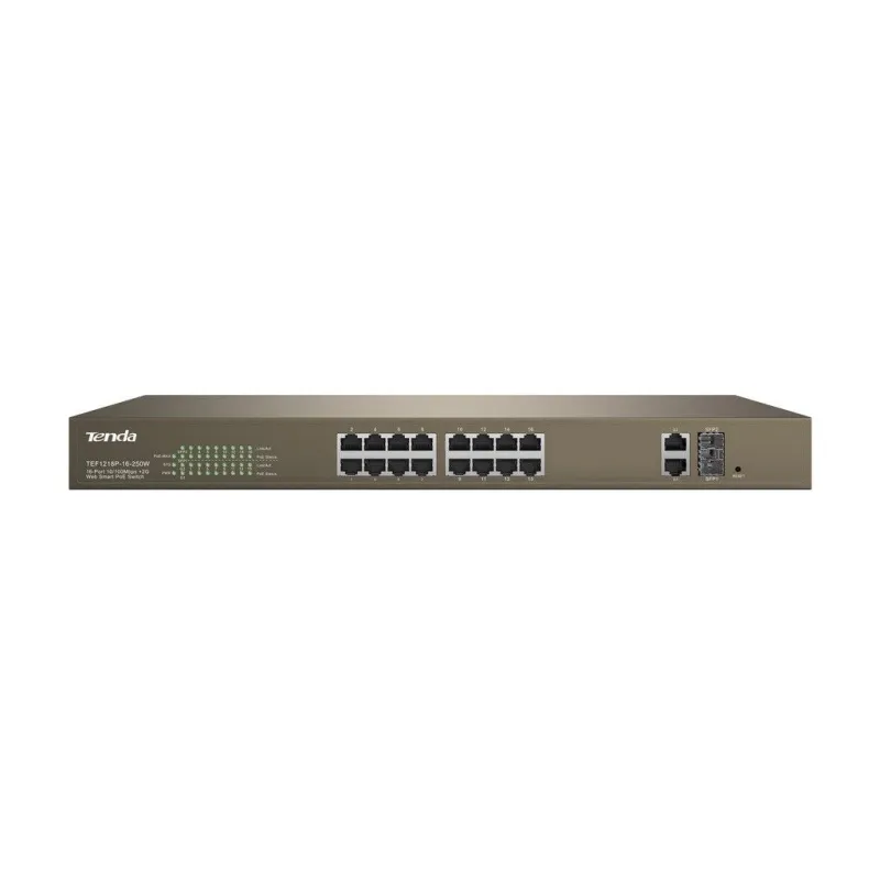 TENDA TEF1218P-16-250W L2 Manage PoE Switch 16 Port 100Mbps, 2 Port Gigabit จ่ายไฟ POE 802.3at 250W