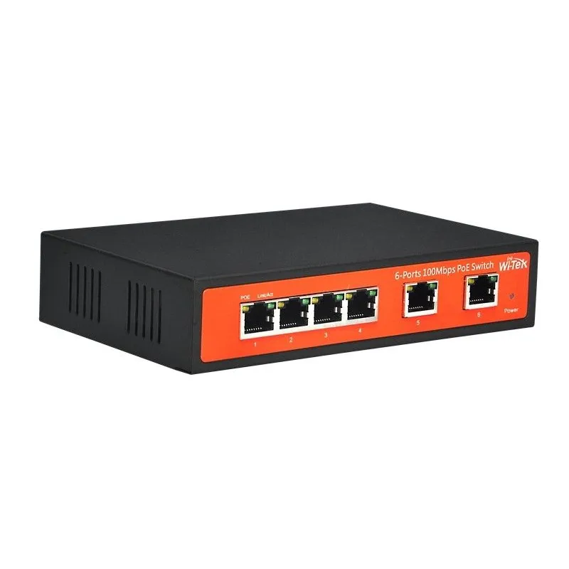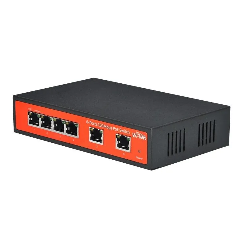 Wi-Tek WI-PS106 POE Switch 6 Port 100Mbps, 4 Port POE 802.3af/at 2 Port Uplink Max 65W