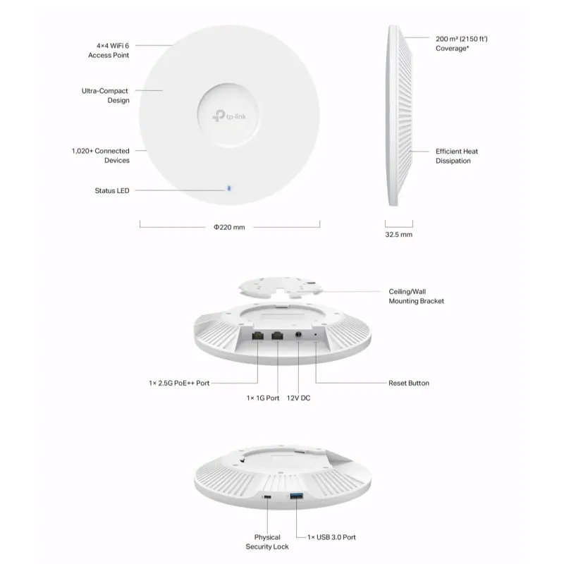 Overview | TP-LINK AP9665 AX3600 Ceiling Mount WiFi 6 Access Point 160MHz, Dual-Band 2.4/5GHz, Port LAN 2.5Gbps, กระจายรอบทิศทาง บริหารจัดการผ่าน Omada Controller |