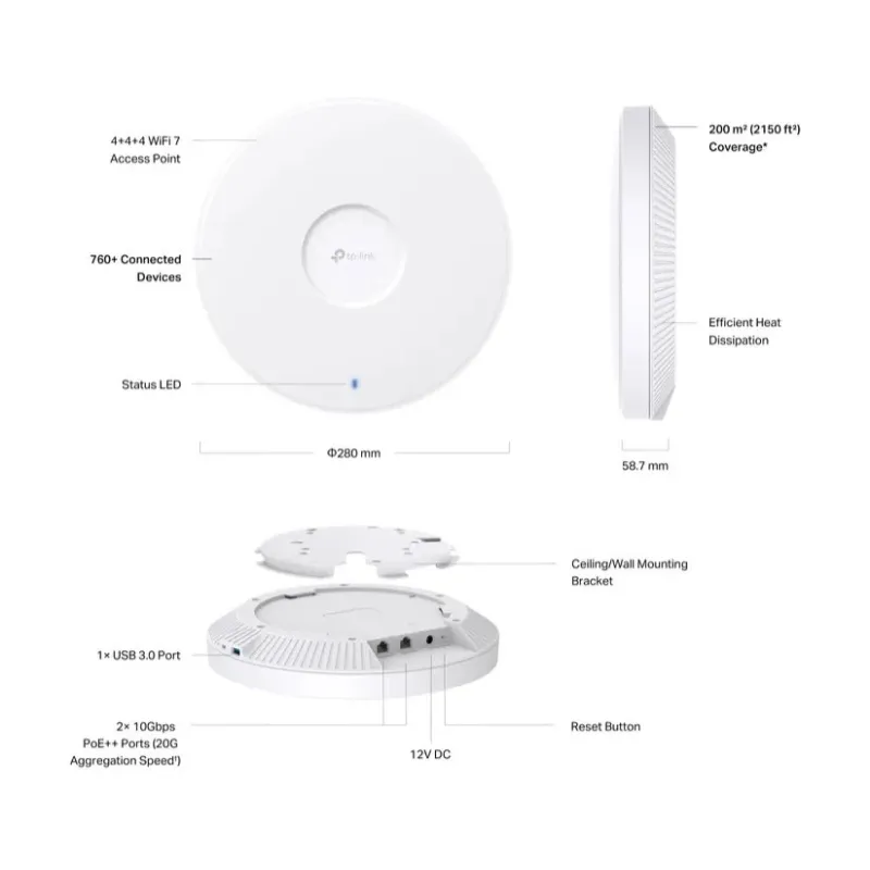 Overview | TP-LINK AP9778 BE19000 Ceiling Mount Wi-Fi 7 Access Point 320MHz MLO, Tri-Band 2.4/5/6GHz, Port LAN 10Gbps, รองรับ 1500 Clients กระจายรอบทิศทาง บริหารจัดการผ่าน Omada Controller |