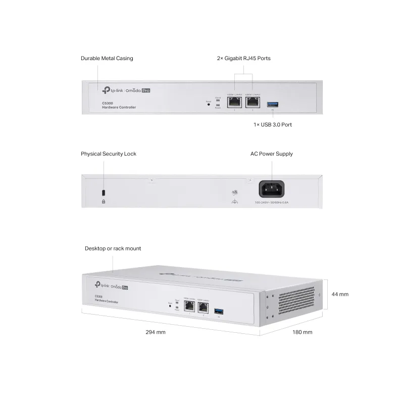| Package Contents | • Omada Pro Hardware Controller C5300 • Quick Installation Guide • Ethernet Cable • Power Cord • Rackmount Kit |