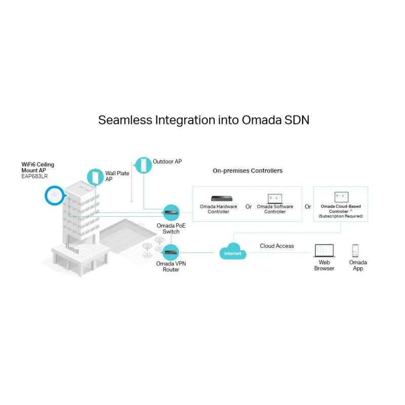 - Centralized Cloud Management : Omada SDN integration manages the whole network locally or from the cloud via web UI or Omada app.