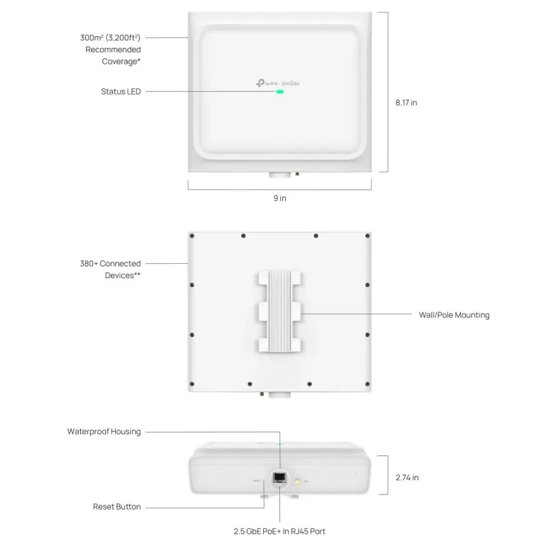 | Package Content | • Access Point EAP772-Outdoor • Waterproof Kit • Mounting Kits • Installation Guide |