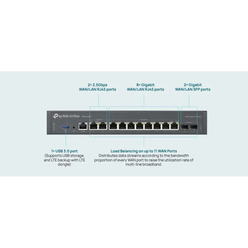 ER7412-M2 TP-LINK Omada Multi-Gigabit VPN Router 8 WAN, Port 2.5Gbps