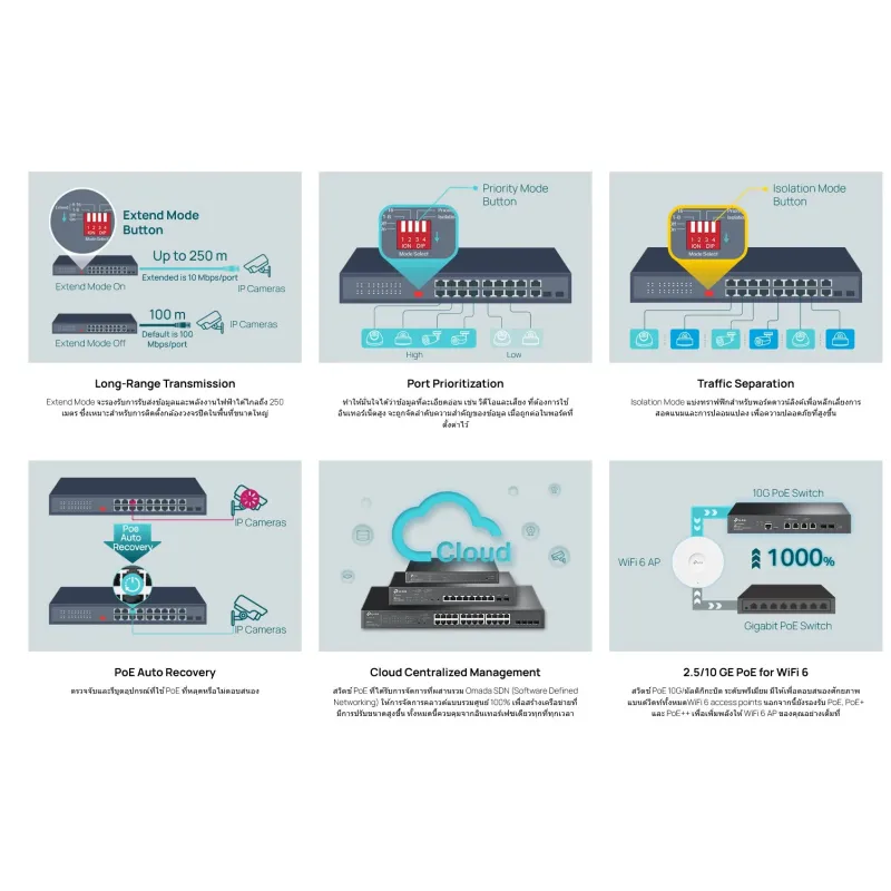 กรุณาช่วย Review สินค้า TP-LINK ES210GMP Omada 10-Port Gigabit Easy Managed Switch 8-Port PoE+, 1 Port SFP, จ่ายไฟมาตรฐาน 802.3at สูงสุด 123W, รองรับ VLAN 802.1q, Port Mirroring, Loop Prevention, IGMP Snooping