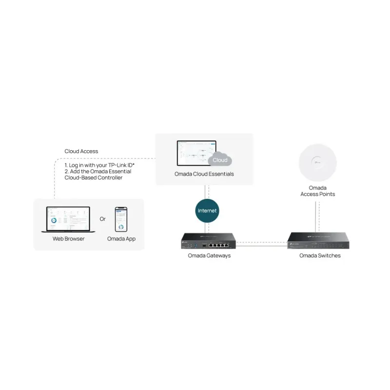 - Centralized Cloud Management via the web or the Omada app†