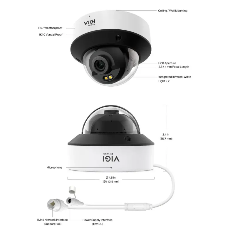 | Package Content | • VIGI Network Camera • Quick Start Guide • Waterproof Cable Attachments • Mounting Accessories |