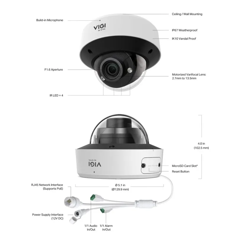 | Package Content | • VIGI Network Camera • Quick Start Guide • Waterproof Cable Attachments • Mounting Accessories |