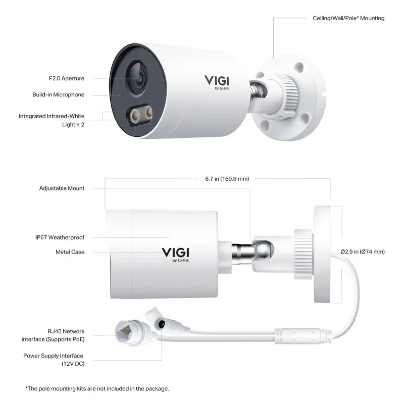 | Package Content | • VIGI Network Camera • Quick Start Guide • Waterproof Cable Attachments • Mounting Accessories |