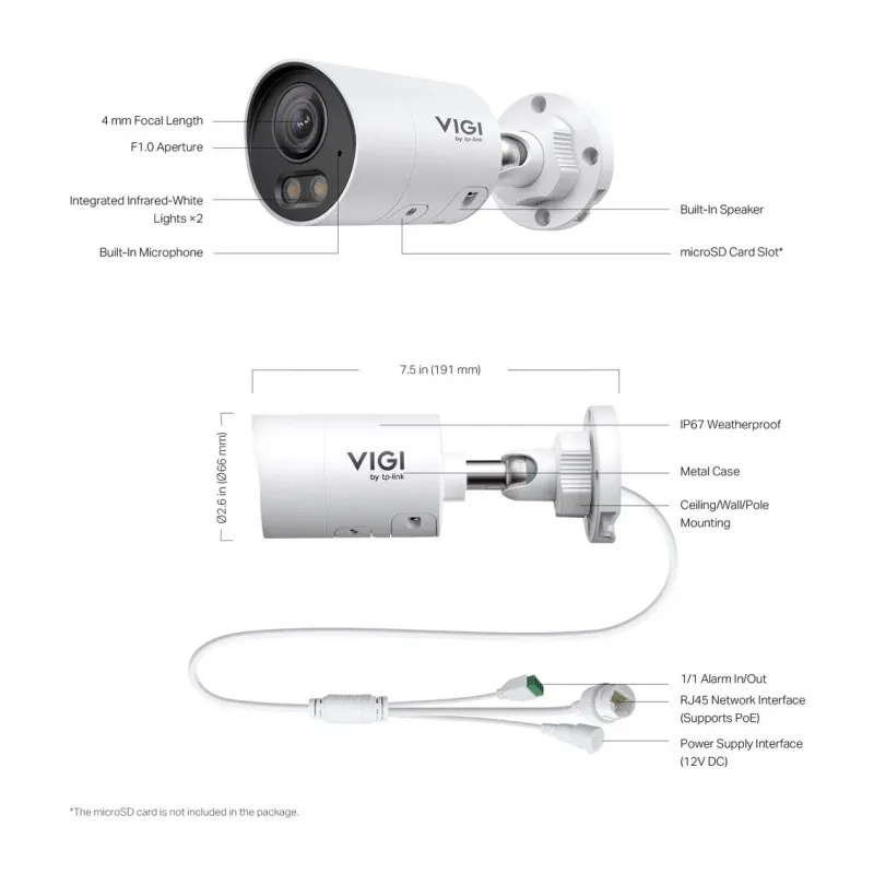 | Package Content | • VIGI Network Camera • Quick Start Guide • Waterproof Cable Attachments • Mounting Accessories |