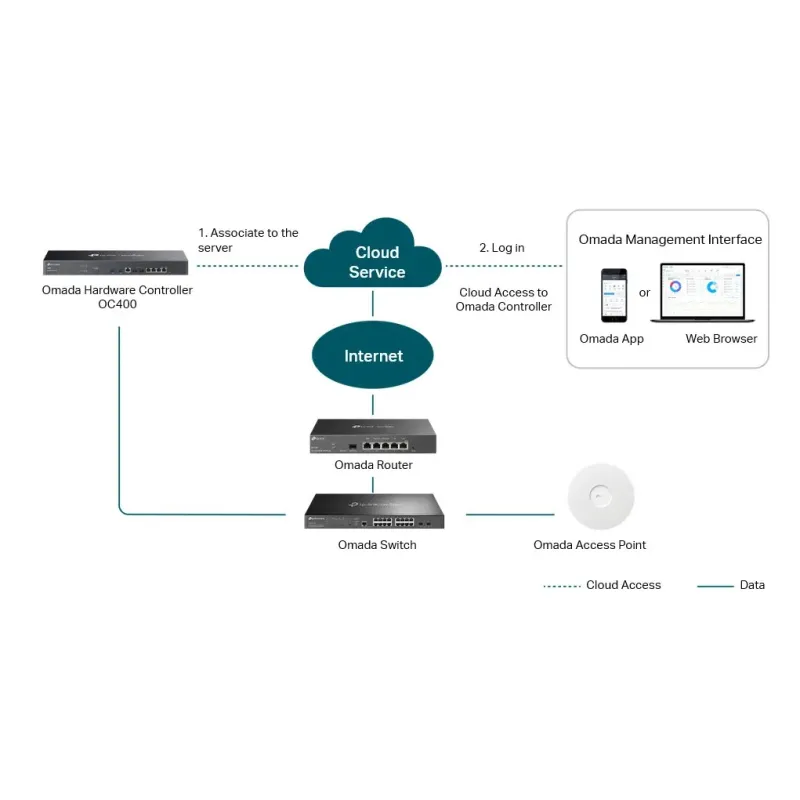 Overview | TP-Link OC400 Omada Hardware Controller อุปกรณ์ Network Controller สำหรับบริหารจัดการ TP-Link Omada AP, JetStream Switches, SafeStream Routers. รองรับการ Manage ผ่าน Cloud และ Mobile App พร้อม Secure guest network ผ่าน Facebook Wi-Fi, SMS login, Voucher |
