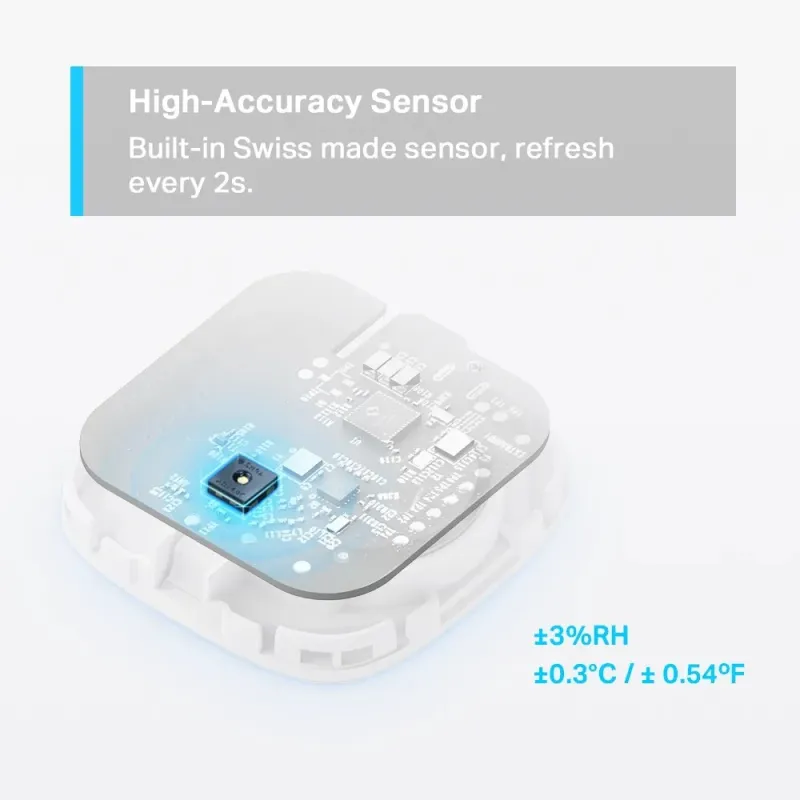 - Fast & Accurate Monitoring - ตรวจวัดอุณหภูมิและความชื้นด้วยเซ็นเซอร์ความแม่นยำสูง Swiss-made Quality มีการส่งและอัพเดทข้อมูลทุก ๆ 2 วินาที (ค่าความแม่นยำ: ±0.3 °C, ±3% RH)