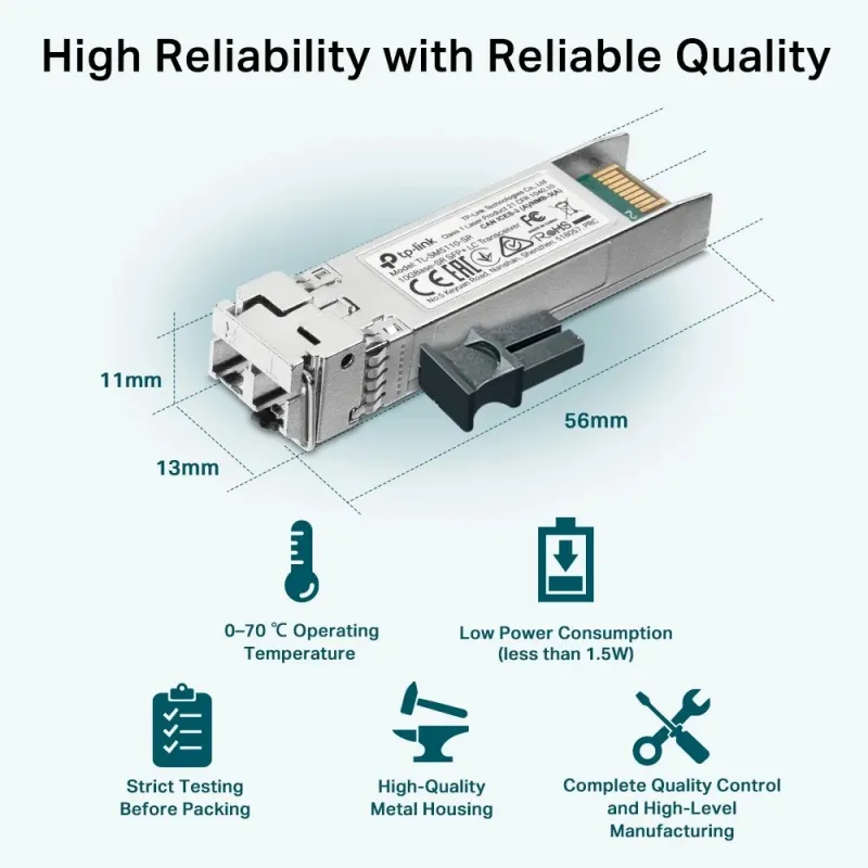 • Compatible with switches with 10G SFP+ ports, like JetStream TL-SG3428X, TL-SG3428XMP, and more.