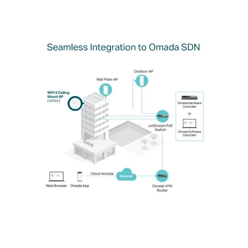 - Centralized Cloud Management : Omada SDN integration manages the whole network locally or from the cloud via web UI or Omada app.