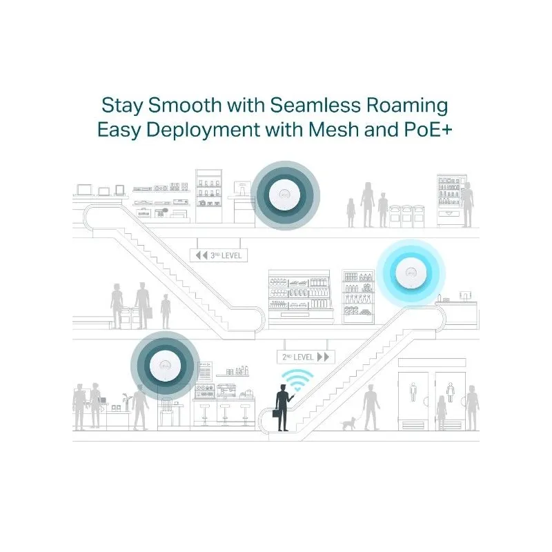 - Omada Mesh: Enables wireless connectivity between access points for extended range and flexible deployment.