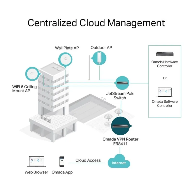 - Centralized Management: Cloud access and Omada app for ultra convenience and easy management.