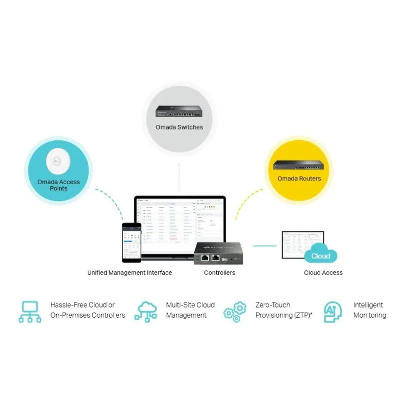 - Integrated into Omada SDN: Zero-Touch Provisioning (ZTP)*, Centralized Cloud Management, and Intelligent Monitoring.