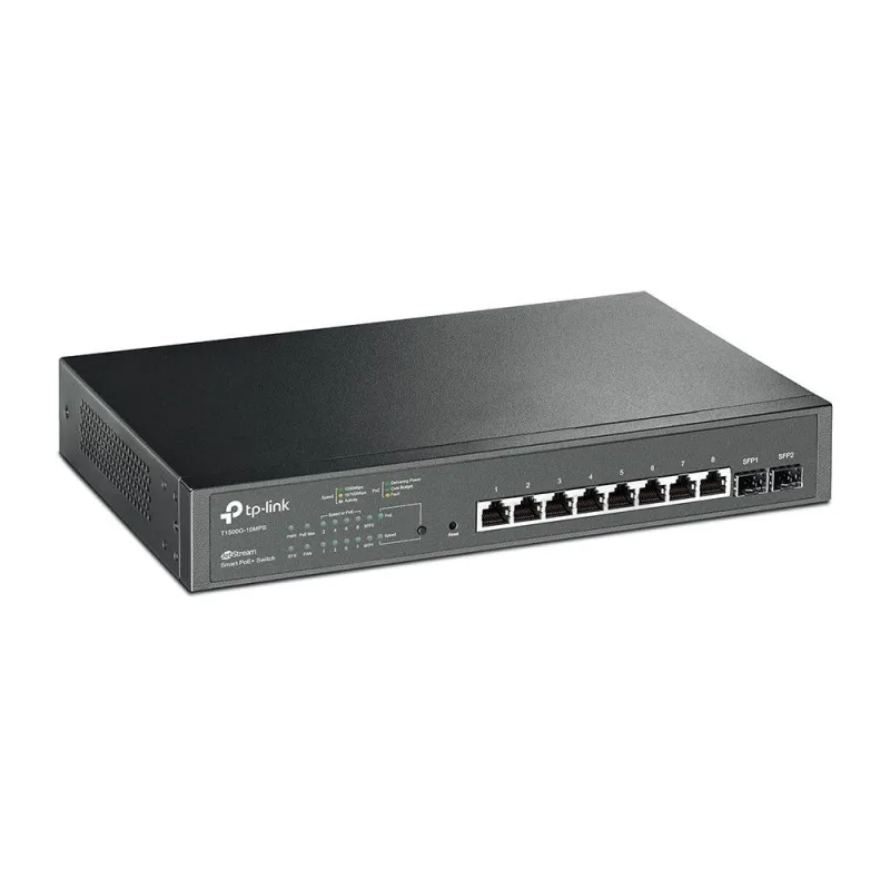 TP-Link T1500G-10MPS JetStream 8-Port Gigabit Smart PoE+ L2 Managed Switch Gigabit 2 SFP รองรับ POE 8 Port 802.3at สูงสุด 116W, รองรับ Static Routing, 802.1Q VLAN ,รองรับ Omada Controller