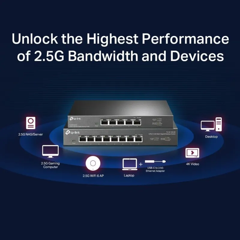 - Five 2.5 Gbps Ports. 5× 2.5-Gigabit ports unlock the highest performance of your Multi-Gig bandwidth and devices, and provide up to 25 Gbps of switching capacity.