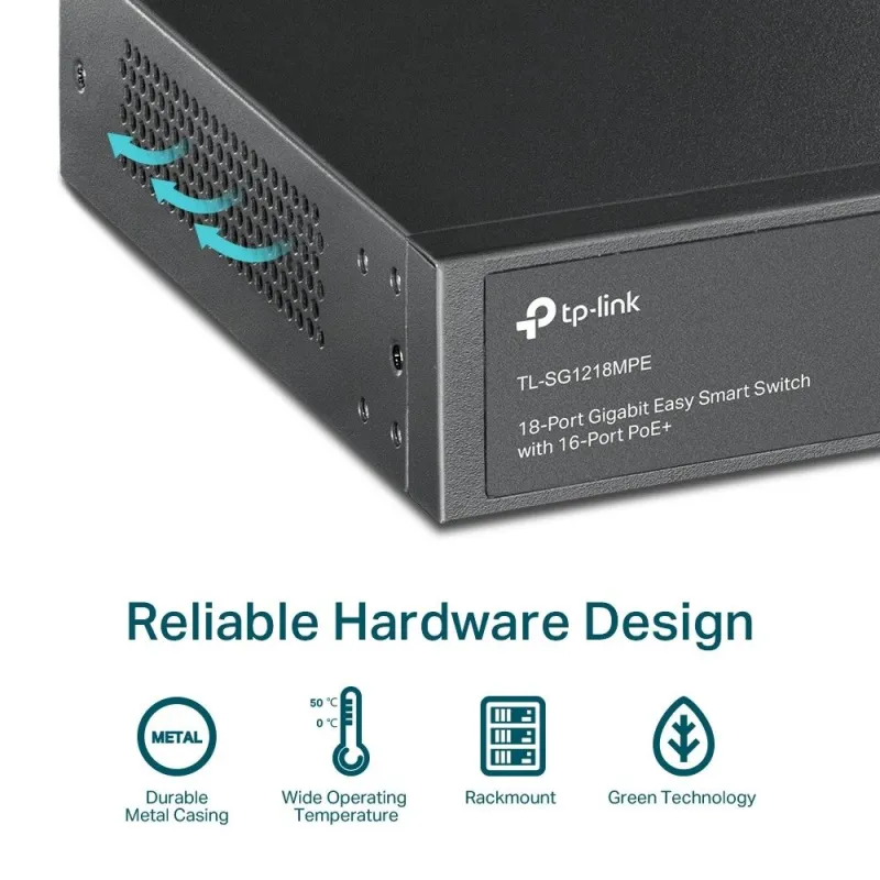 Overview | TP-LINK TL-SG1218MP 18-Port Gigabit Easy Smart Switch 16-Port PoE+, 2 SFP/RJ45 Combo Port, จ่ายไฟ POE 16 Port สูงสุด 250W รองรับ 802.1Q VLAN, IGMP Snooping, Loop Prevention |