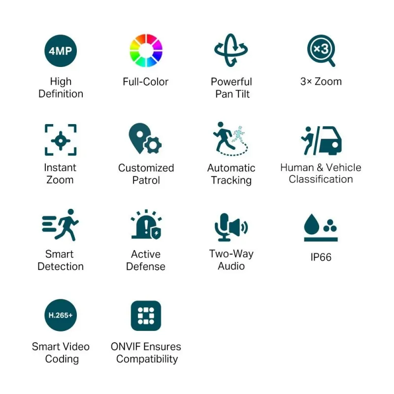 - Active Defense: ส่งสัญญาณเตือนผู้บุกรุกด้วยแสงและเสียงทันทีเมื่อเกิดเหตุการณ์ผิดปกติ