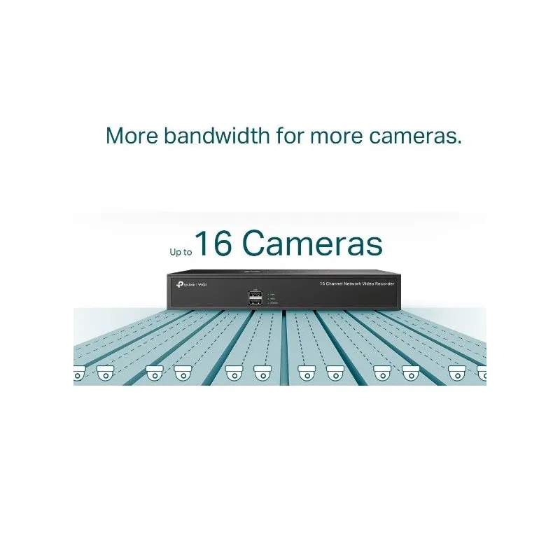 High video access bandwidth ensures your NVR connects more cameras with high resolution.Based on laboratory testing using VIGI cameras, VIGI NVR can connect up to 16x 4MP cameras.