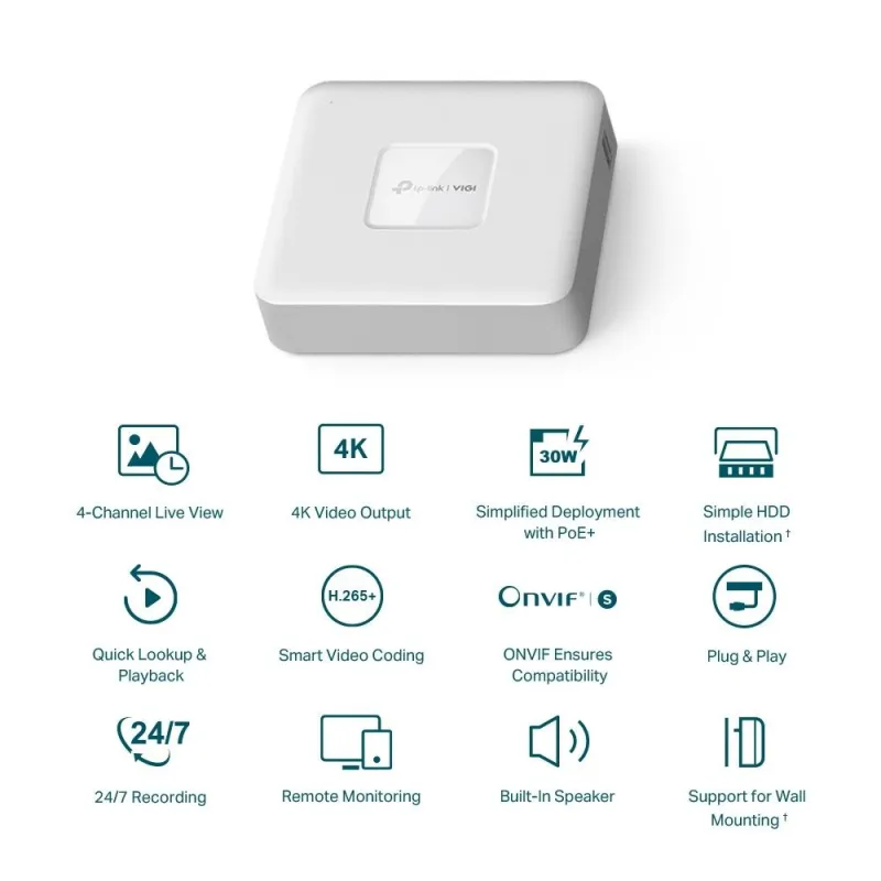 Overview | TP-Link VIGI NVR1004H-4P เครื่องบันทึก Network Video Recorder 4 Channel บันทึกมาตรฐาน H.265+ รองรับ HDD 1x10TB (Exclude HDD) จ่ายไฟ POE 4 Port 53W |