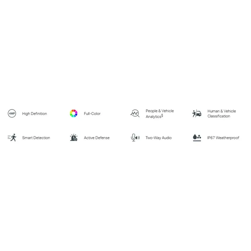 | Wide Dynamic Range | 120 dB Note: When People & Vehicle Analytics is enabled, only DWDR is supported. |