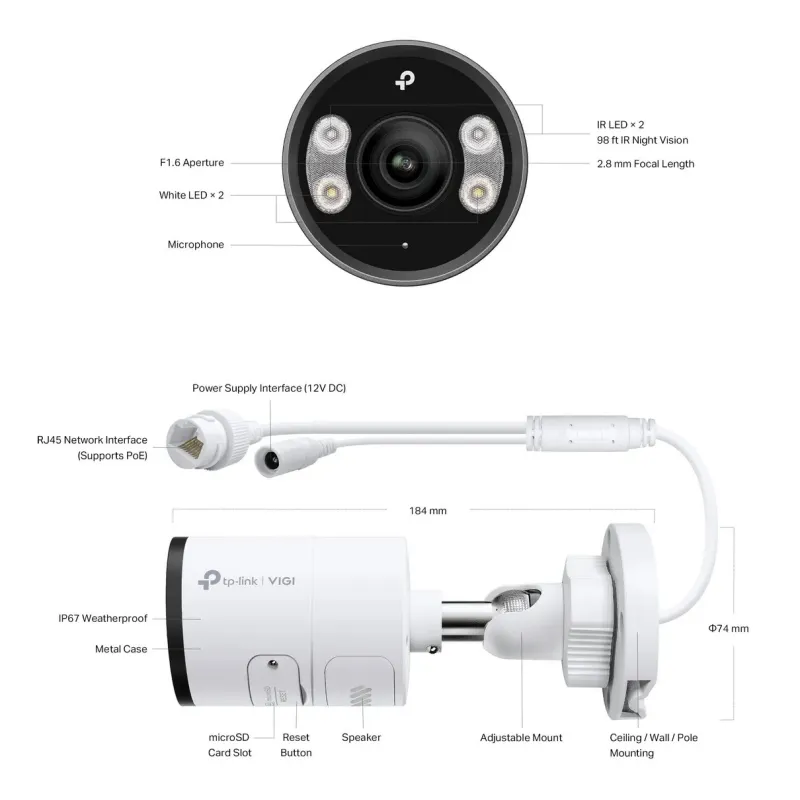 | Package Contents | • VIGI Network Camera • Quick Start Guide • Waterproof Cable Attachments • Mounting Accessories |