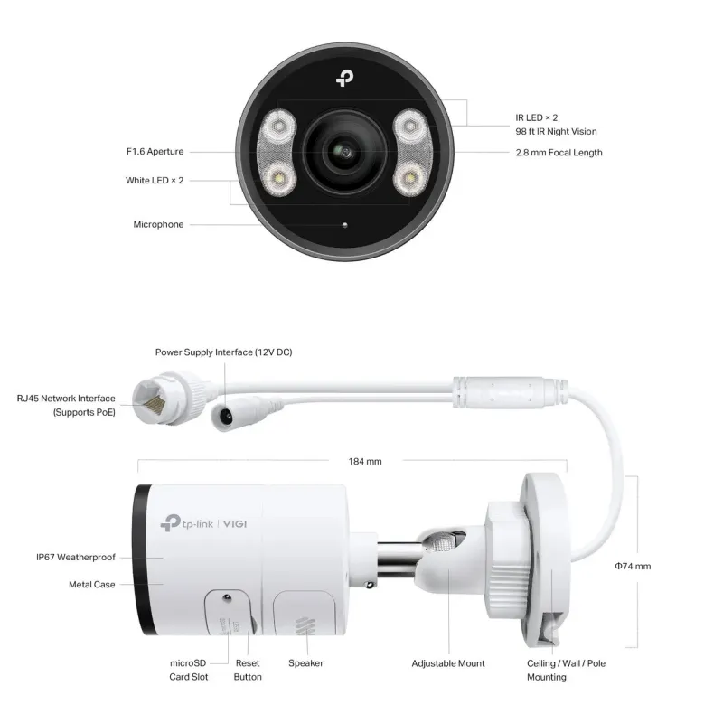 | Package Contents | • VIGI Network Camera • Quick Start Guide • Waterproof Cable Attachments • Mounting Accessories |