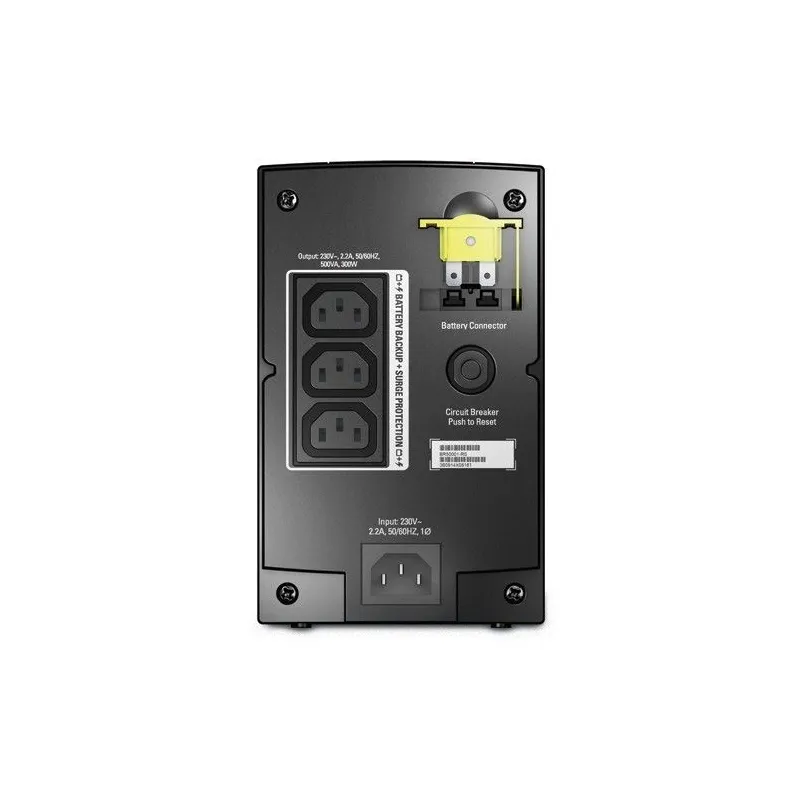 APC Back-UPS นี้ให้การป้องกันไฟและไฟกระชากสำหรับเครือข่ายไร้สาย คอมพิวเตอร์ คอนโซลเกม และอุปกรณ์อิเล็กทรอนิกส์อื่นๆ ในบ้านหรือธุรกิจของคุณ UPS แบบทาวเวอร์ขนาด 500VA มีช่องเสียบทั้งหมด 3 ช่อง ซึ่งทั้งหมดนี้เป็นแบตเตอรี่สำรองและป้องกันไฟกระชาก มีระดับพลังงานไฟกระชาก 240 จูล UPS นี้มีการรับประกัน 2 ปีและการรับรองผลิตภัณฑ์ CE สามารถใช้งานร่วมกับแบตเตอรี่ที่ผู้ใช้เปลี่ยนได้โดยเฉพาะ และตลับแบตเตอรี่ทดแทนของ APC ช่วยคืนประสิทธิภาพของ UPS ให้เป็นข้อกำหนดเฉพาะดั้งเดิม