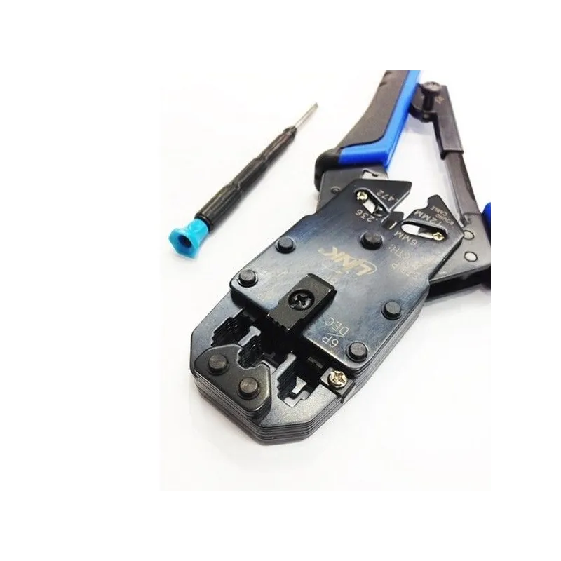 Link TL-1101R คีมเข้าหัวอย่างดีสำหรับมืออาชีพ รองรับได้ถึง 3 ชนิด หัวแลน RJ45, หัวโทรศัพท์ RJ11 และ RJ12  (4-6 Pos) และ 4 Pos (HS) พร้อมใบมีดตัด ปลอกสายในเครื่องมือเดียว