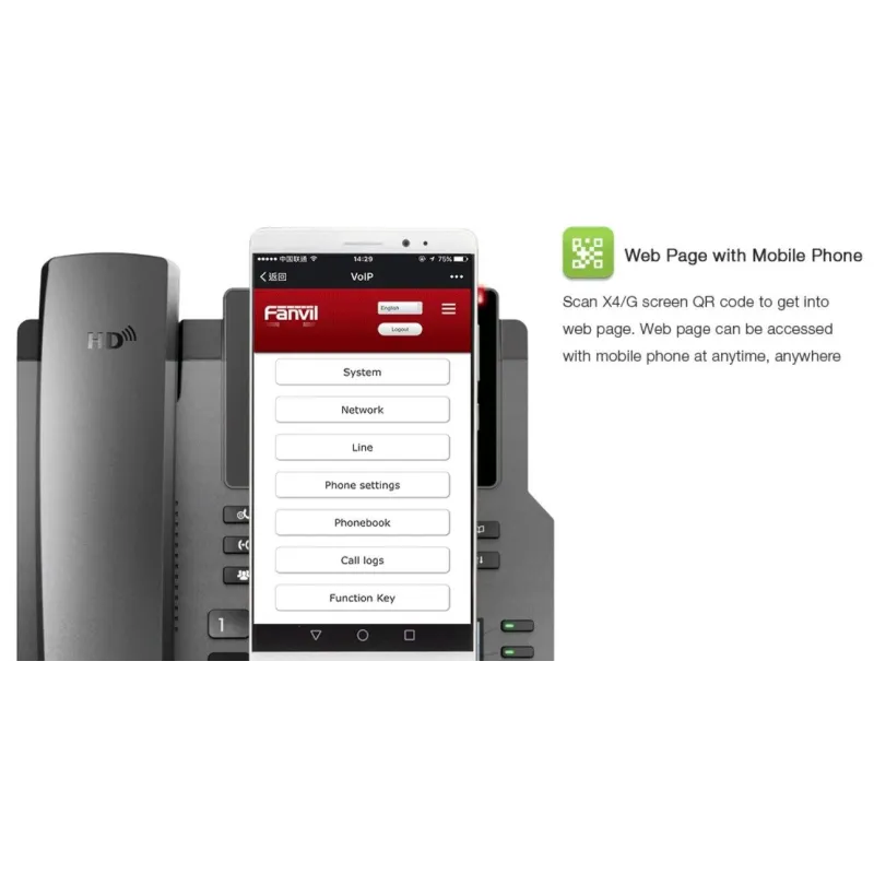 Overview | Fanvill X4G อุปกรณ์ IP-Phone 4 คู่สาย (4 SIP Account) HD Voice, หน้าจอสี LCD Color 320x240, มี 30 DSS Keys สำหรับแสดงสถานะของ Extension ระบบเสียงคมชัด (HD Voice) มีระบบสมุดโทรศัพท์ (Smart Phonebook) ควบคุม สั่งการผ่านเว็บได้ , 2 Port Lan ความเร็ว Gigabit รองรับ POE 802.3af (ไม่มี Adapter ในชุด) |