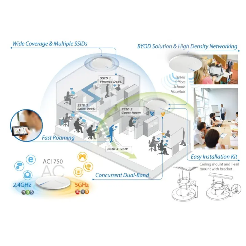 Edimax CAP1750 Ceiling-Mount PoE Access Point มาตรฐาน AC Dual-Band ความเร็ว 1750Mbps รองรับ POE
